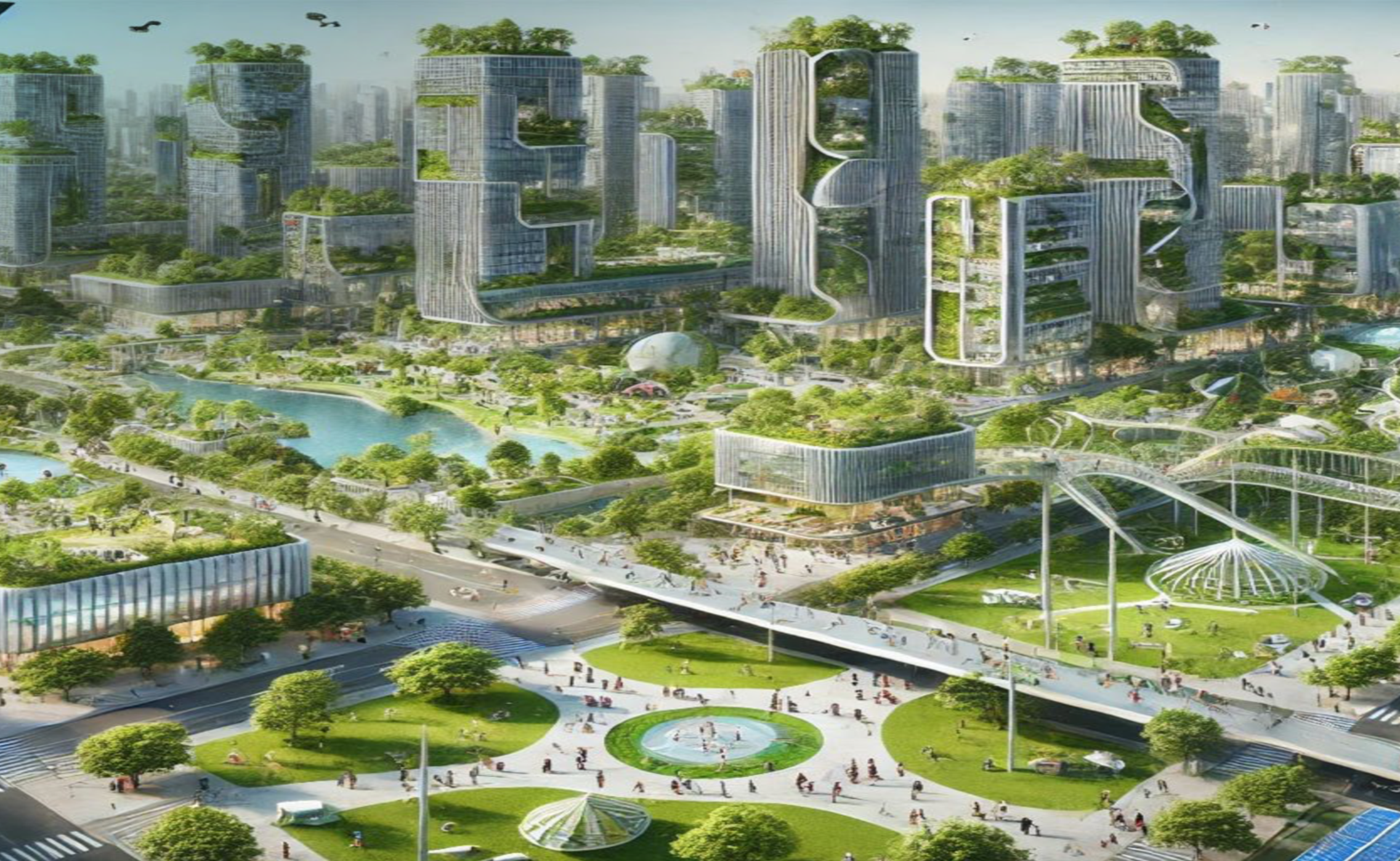 - Водные объекты и рекреация у воды (интерактивные фонтаны, плавающие сады, зоны релаксации).